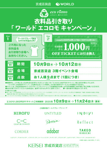 ご不要になった衣料品を会場へお持ちいただくと、エコロモ1,000円OFFチケットとお引き換…