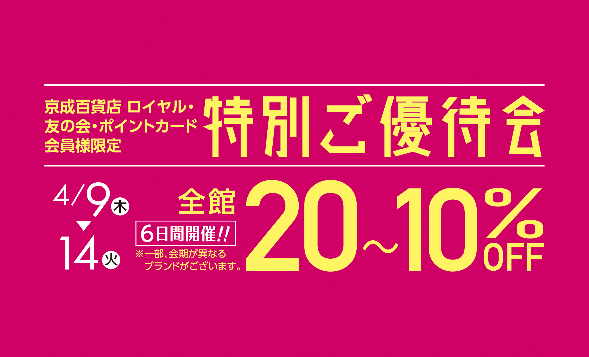 左記のマークが特別ご優待会の割引対象商品となります。 お買い物の際は、京成百貨店各種カード…