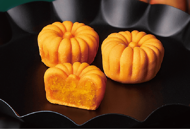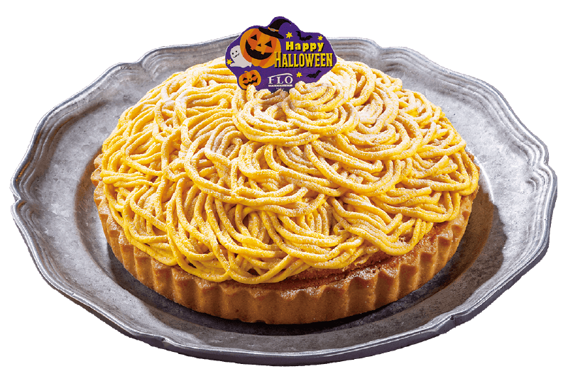 アーモンド生地のタルト台にクレームディプロマット、パンプキンクリームを絞ったハロウィン期間限定商品。