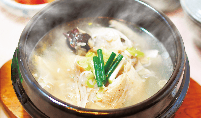 サムゲタン(参鶏湯)は、若鶏の中にもち米、高麗人参、なつめ、ニンニクなどを入れ、ゆっくり煮込んだ料理です。