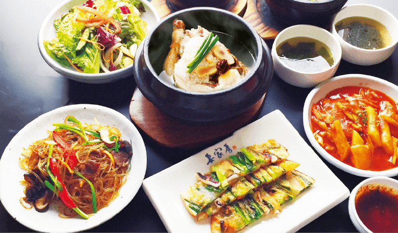 栄養とコラーゲン満点の美容食「参鶏湯」と妻家房人気料理の期間限定コースです。