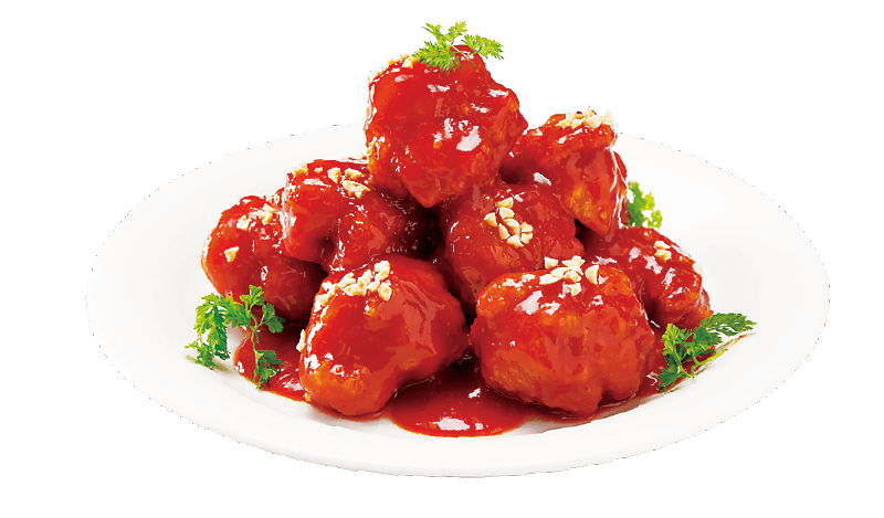 辛いコチュジャンたれをからませ、中はジューシー、外はカリカリ。
