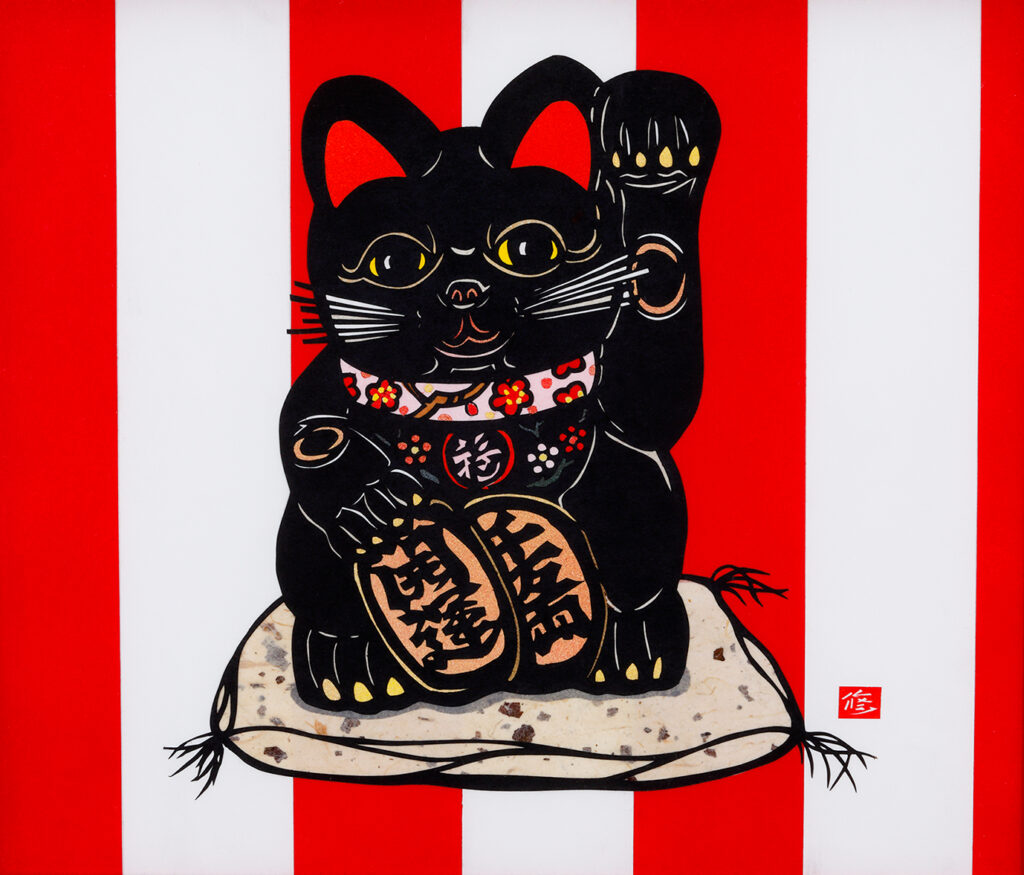 今展では、招き猫や明石鯛などの縁起物の新作版画を展示販売いたします。