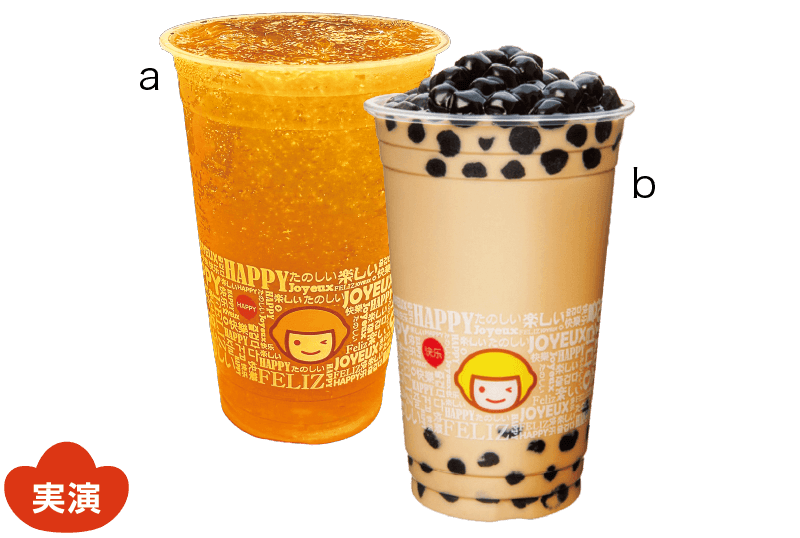 a.冬瓜檸檬茶 b.タピオカミルクティー