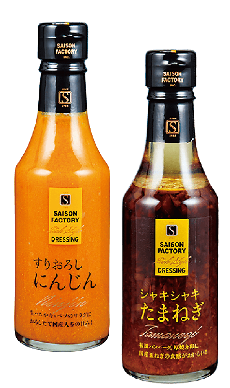 国産にんじんをすりおろし、甘み・風味を活かしたドレッシングとシャキシャキ国産たまねぎを使用し、甘み・食感を楽しんでいただけるドレッシングです。