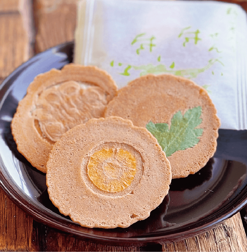 「菜々」はそんな彩りも愛らしい野菜と当店秘伝の濃い生地を、手焼きでうすくうすく焼き上げました。