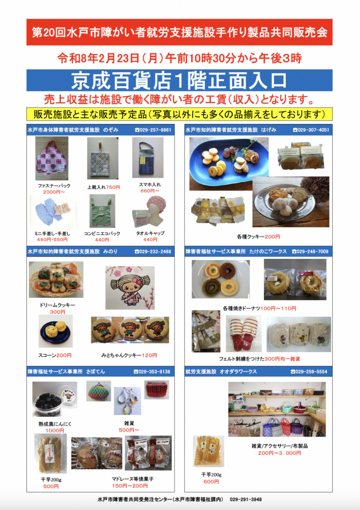 第20回水戸市障がい者就労支援施設手作り製品共同販売会