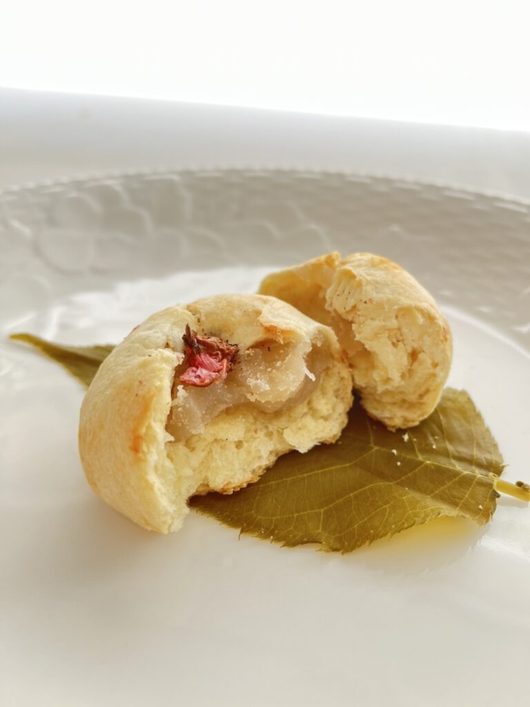 毎年人気のさくらスコーン。さくらの花と葉っぱがこの季節の香りを運んでくれます。