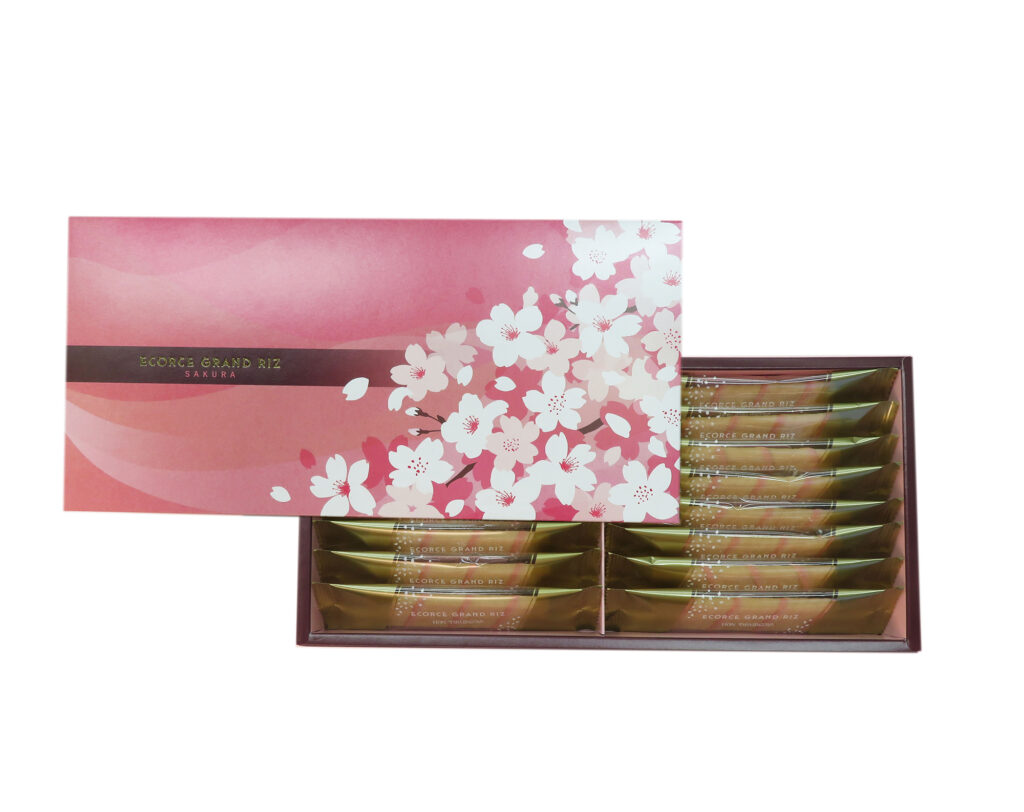 米粉ならではのサクッとした食感に桜風味チョコレートのやさしい塩味が引き立ち桜咲き誇る、優雅な春を奏でます。