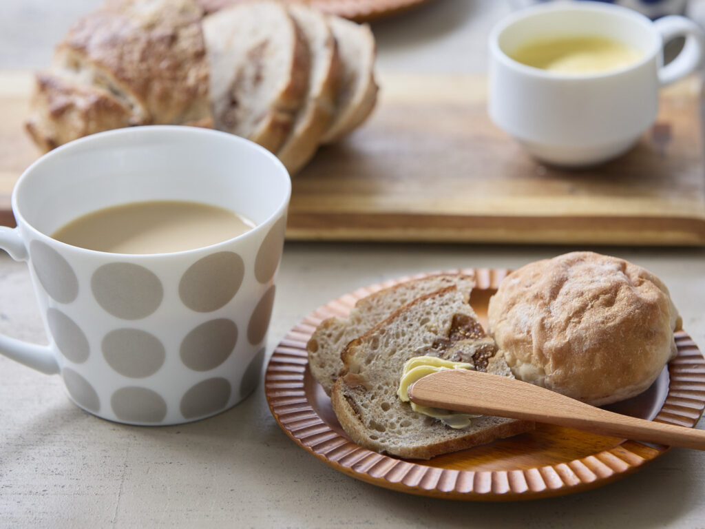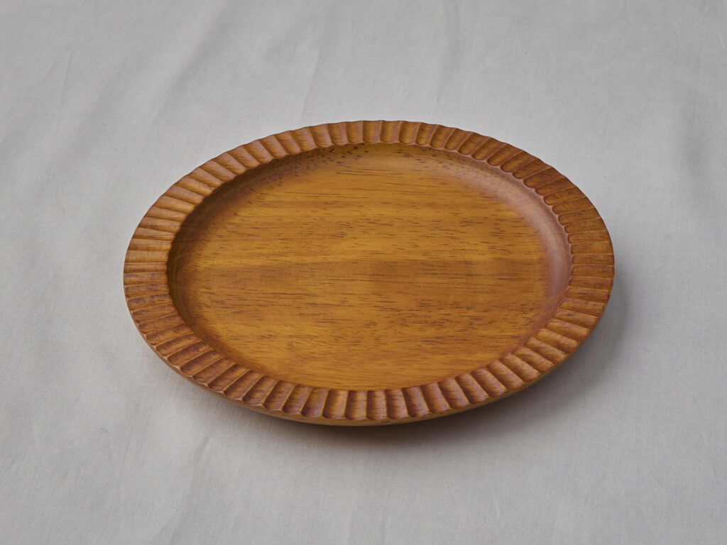 木製のフリルプレートは朝食のパンプレートや、カップソーサーとしても使いやすく、食卓にナチュラルな温かみを添えます。