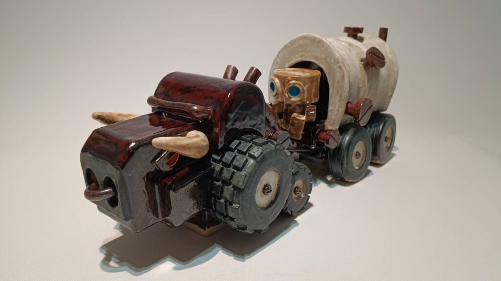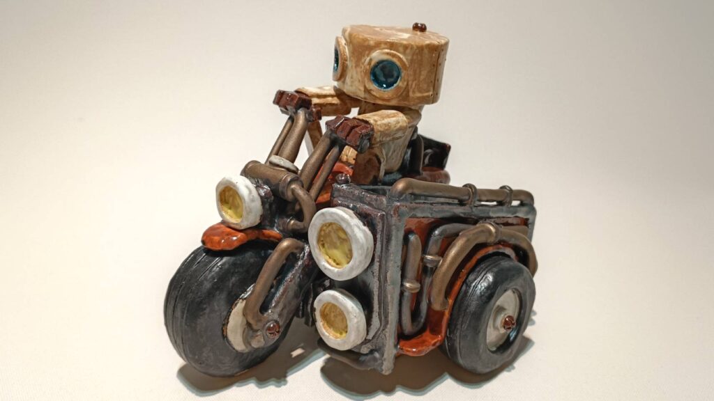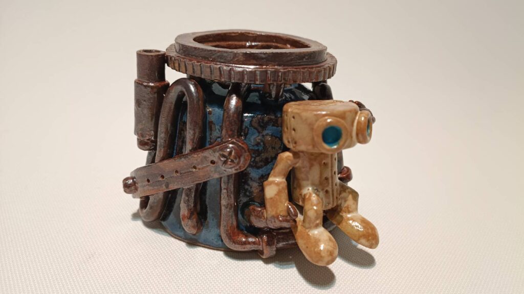 主に陶器を素材とした、メカニックなオブジェや独創的なロボットを制作。