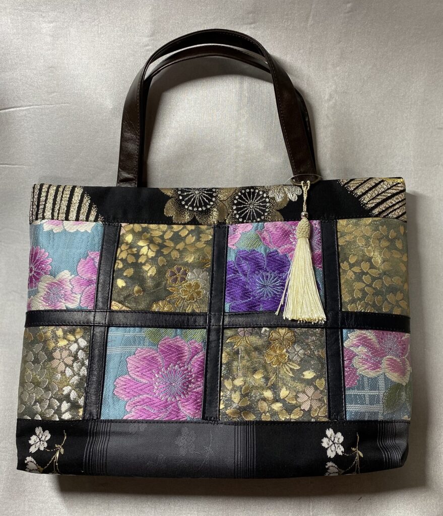 帯と皮革を組み合わせてデザインした伊達な袋物を制作する杜の工房と4年前に来仙した可愛い刺繍小物を制作するウクライナの刺繍作家ナタリアの合同展。