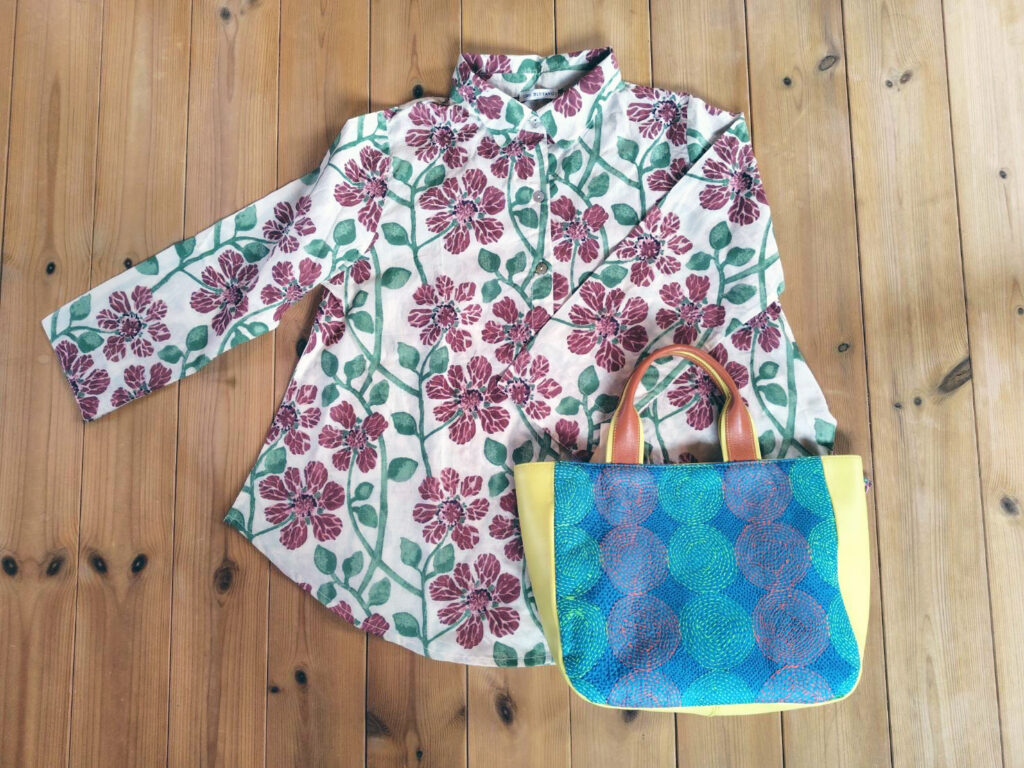 ブロックプリントや手刺繍などの素材を使ったオリジナル作品です。