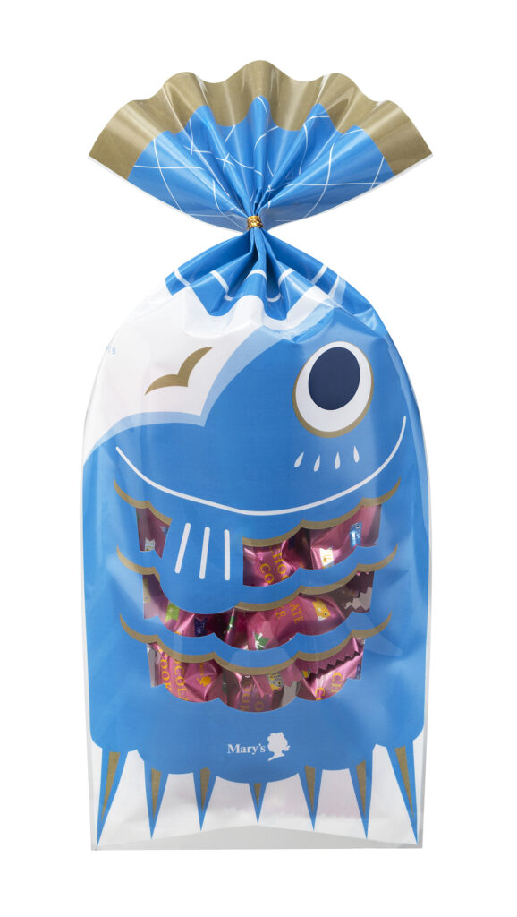 スイートチョコレートでコーティングしたクッキーを、こどもの日をイメージしたパッケージに詰めました。