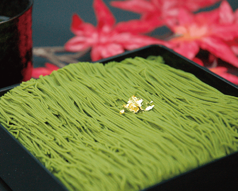 八女茶餡を1mmの糸状にし上品な苦みと羽二重もちの甘みが口の中に拡がります。