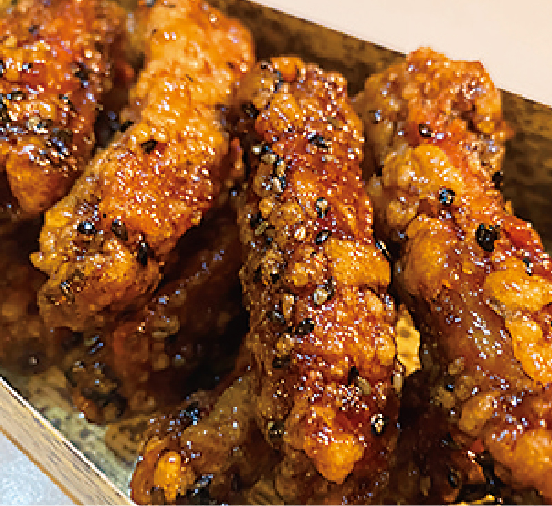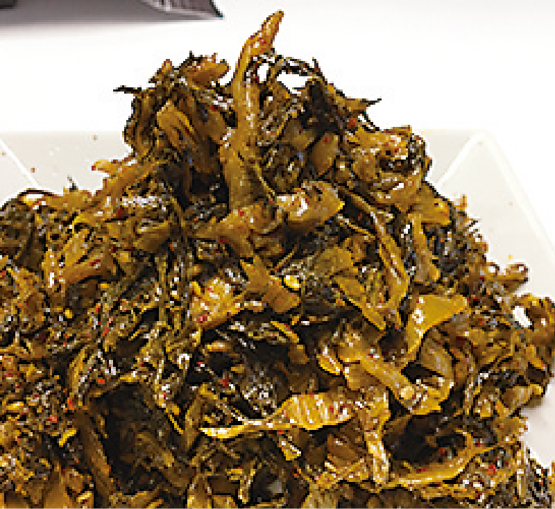 味付けバラ肉と付け合わせの辛子高菜も絶品です。