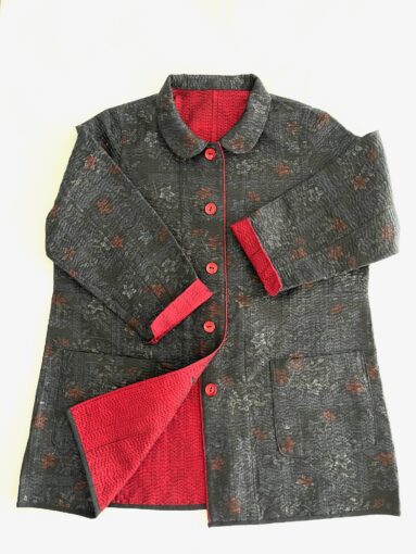 大島紬とシルク生地を2枚合わせ手刺し子を施し仕上げました。リバーシブルで様々な着こなしをお…