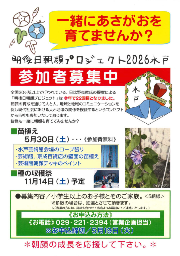 明後日朝顔プロジェクト2026水戸参加者募集中
