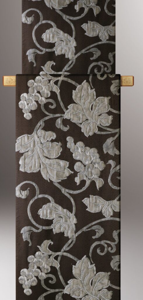 右:西陣織袋帯 能寿秀宝蜀江華文