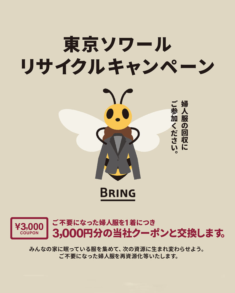 ご不要になった婦人服を1着につき、4階ブラックフォーマル 東京ソワール商品にお使いいただける3,000円クーポンと交換いたします。