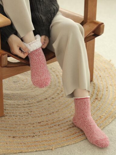 外側をウール、肌に触れる内側を断熱繊維でパイル編みにしたルームソックスです。モコモコ生地で…