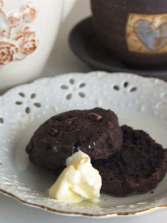バレンタインデーのあるこの季節、とても人気の大人のスコーンです!ブラックチョコレートを入れて、ブラックココアとココアを2種類使用ダークなスコーン生地にビターなチョコレート、紳士淑女が喜ぶチョコレートスコーンです!