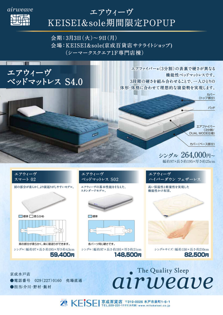 様々な種類の「エアウィーヴ」をお試しいただきながら、お客様の快眠のために、最適な寝具選びをお手伝いいたします。