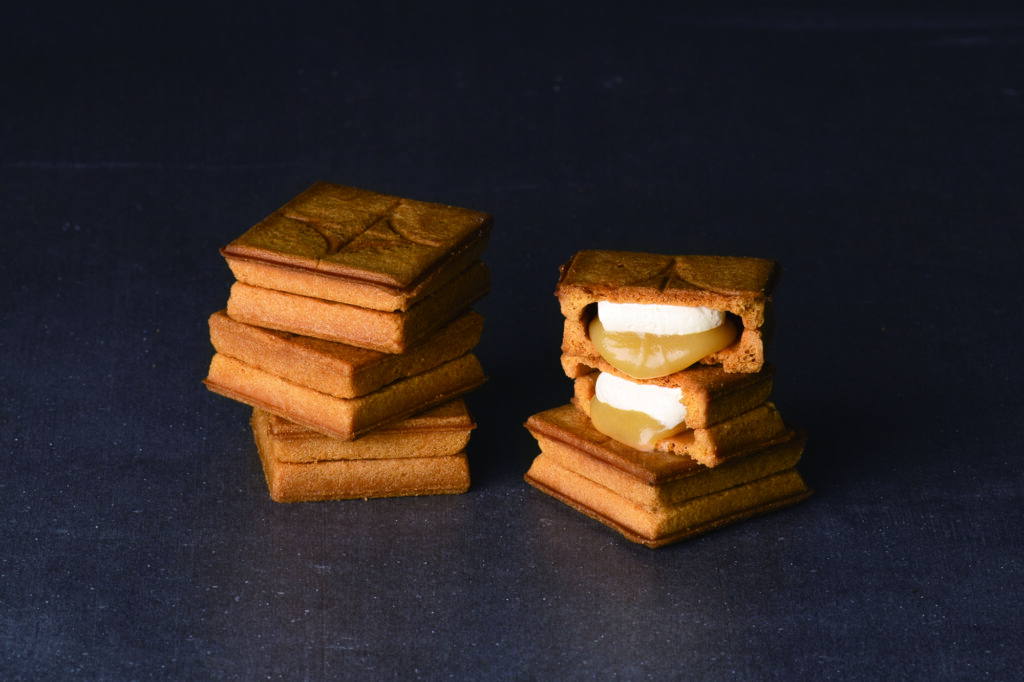 サクサクのクッキーに、濃厚なバタークリームとバターキャラメルの2層を挟んだプレスバターサンド。