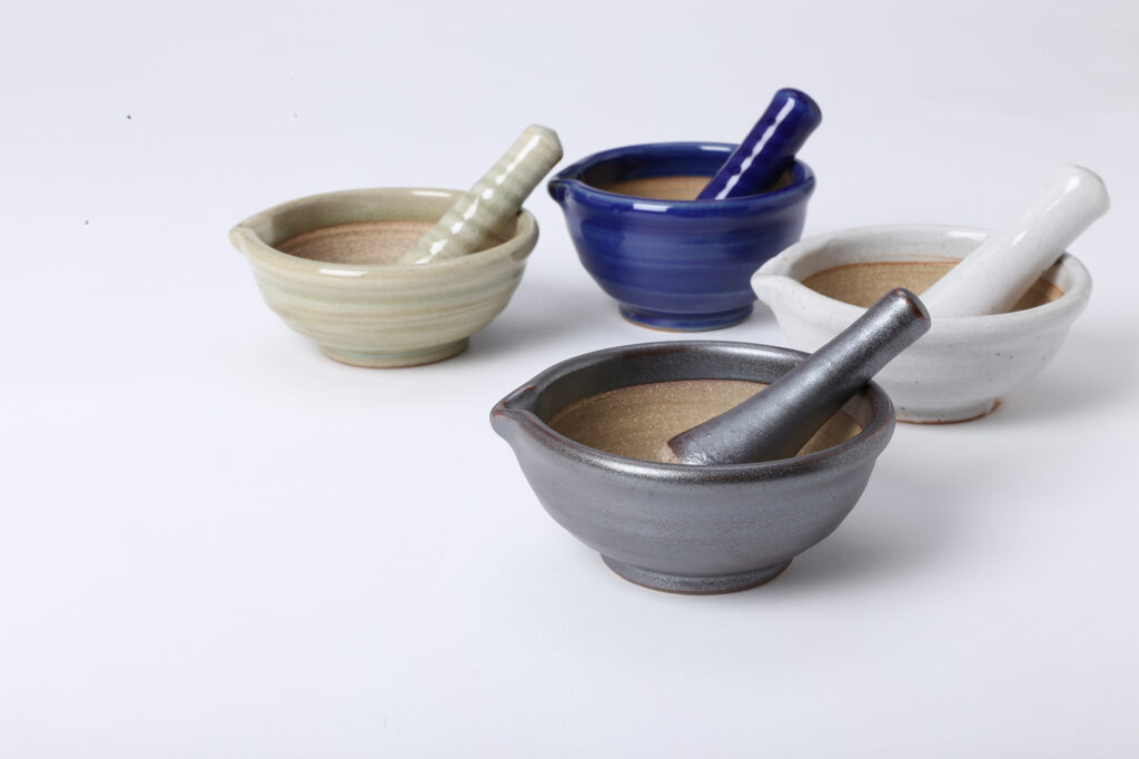 溝の内側を素焼きのままにし、すりこ木も木ではなく陶器にすることで陶器同士がすり合い、硬い物もなめらかな仕上がりになります。